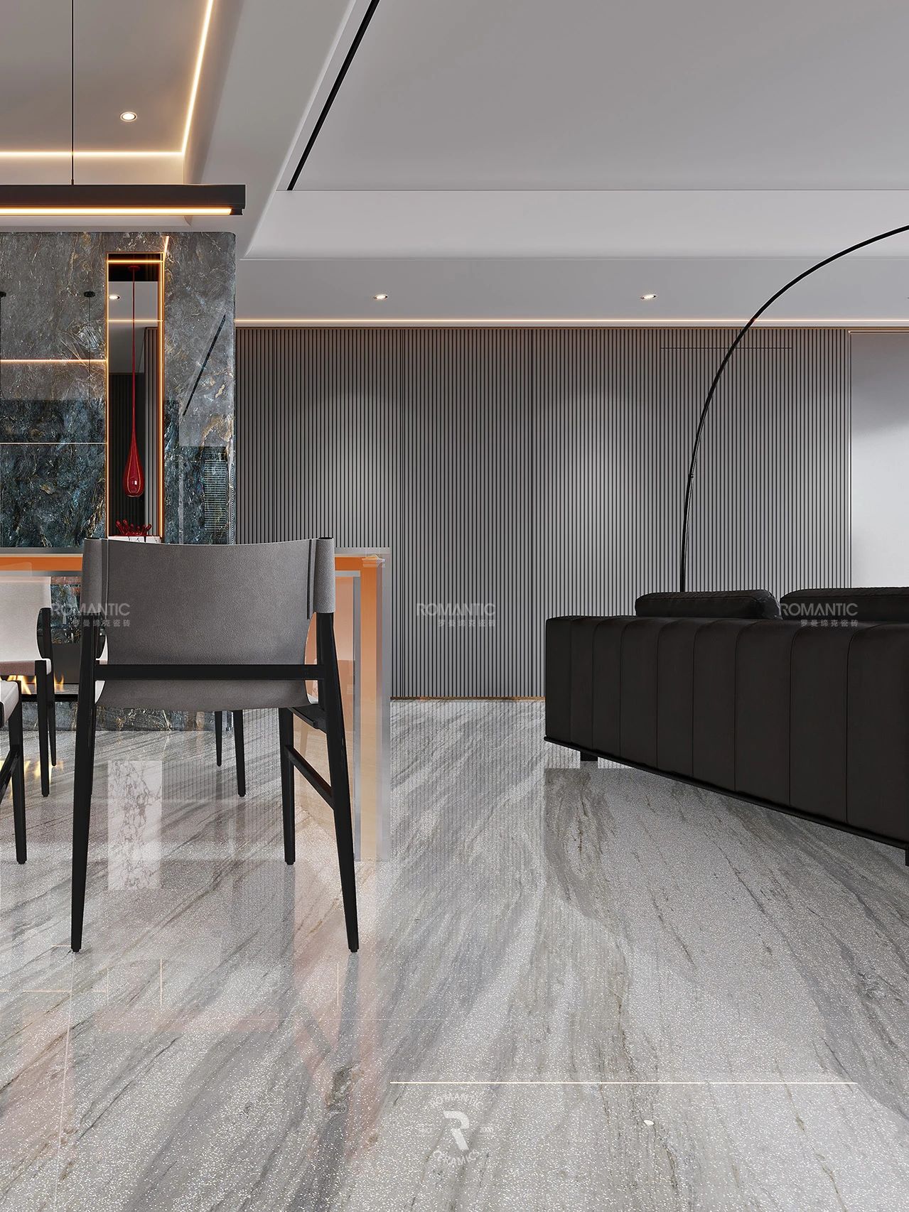 當冰冷的建材被賦予藝術的靈魂,羅曼締克瓷磚-山西長治旗艦店,以前沿的設計、豐富的選材、沉浸的體